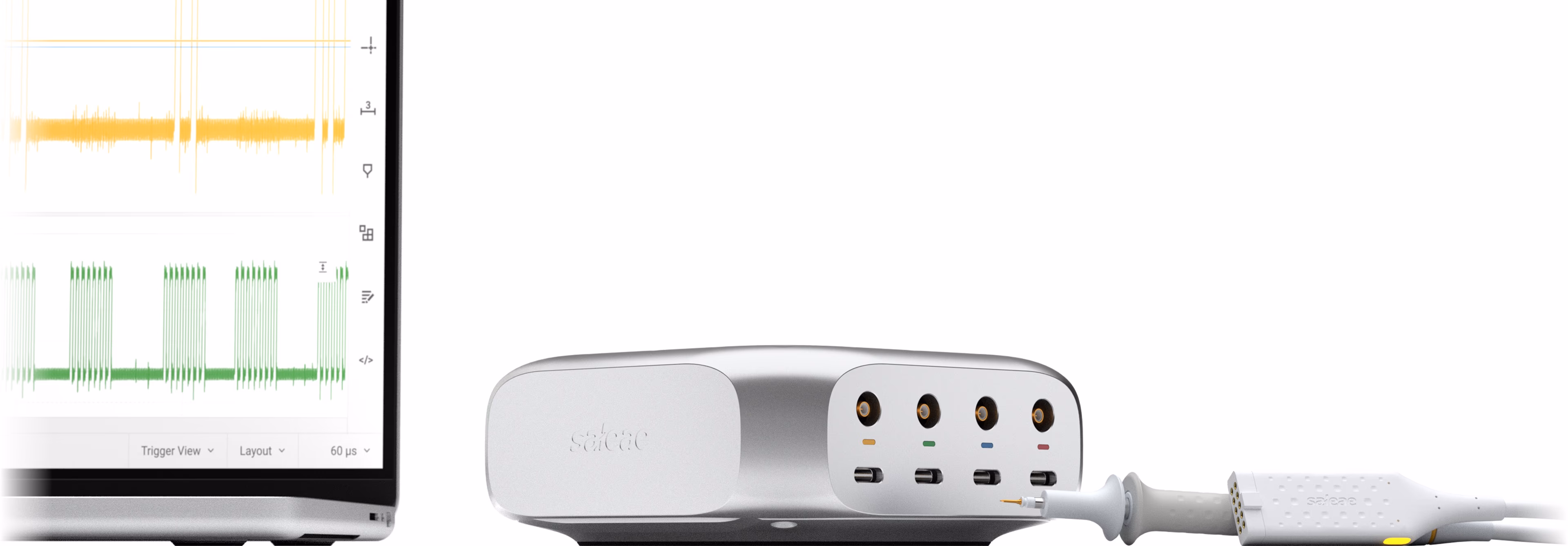 Note that the oscilloscope inputs can be converted to digital "in the background" and streamed continuously to the PC, so it may be more convenient to use the oscilloscope probes even for recording primarily digital signals, since you’ll be able to check for signal integrity issues at the same time as performing your digital debugging.